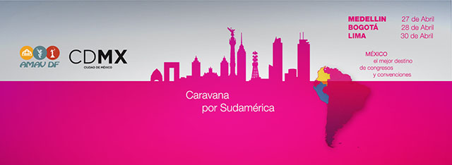 Impulsar el segmento Meetings, Incentives, Conventions and Exhibitions (MICE) tanto en México como en el extranjero es una de las prioridades de AMAV-DF, por ello una caravana de asociados realiza un gira por Sudamérica para presentar el potencial que ofrece la Ciudad de México en el segmento de Congresos, Convenciones, Eventos y Viajes de Incentivo que inició el pasado 27 de abril en Medellín, Colombia, y culminará el 30 de abril en Lima, Perú.