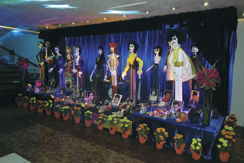 Luego de un espectáculo musical en honor a los famosos ‘rockstars’ que fueron representados simpáticamente, este año, en el Altar de Muertos del hotel, con figuras como Janis Joplin, David Bowie, Freddie Mercury, Bob Marley, Amy Winehouse, y hasta Juan Gabriel, entre otros, los asistentes se reunieron en El Chapulín para festejar tres años de continuo éxito.