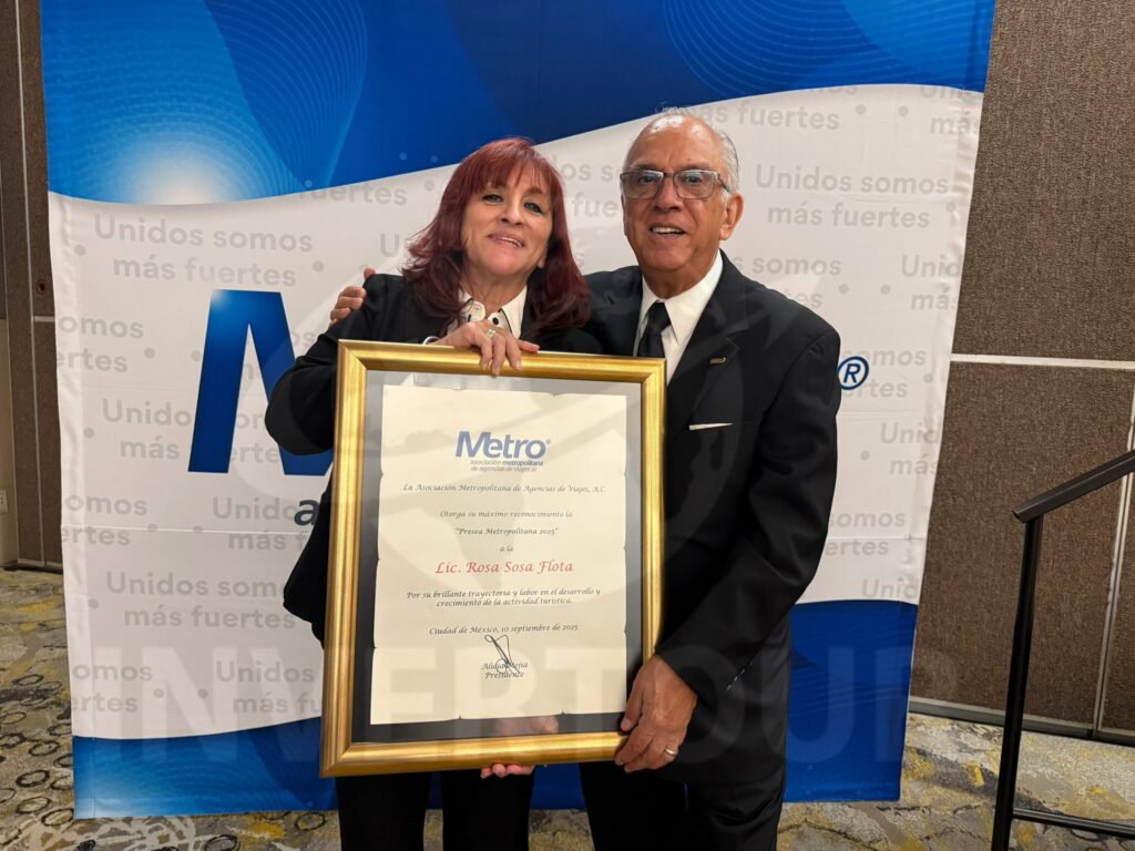 En este 2025, la Presea Metro, un reconocimiento a los profesionales que han dedicado un gran tiempo y vida al sector del turismo fue para Rosy Sosa Fuentes, directora general de la Asociación Metropolitana de Agencias de Viajes.
