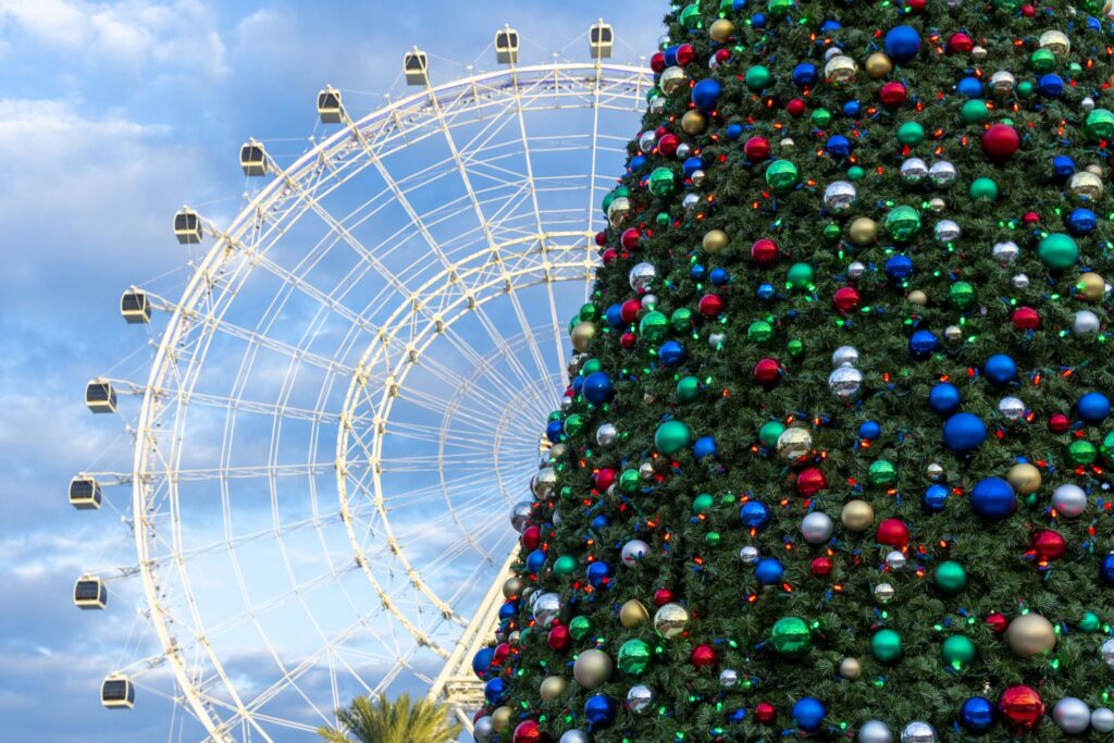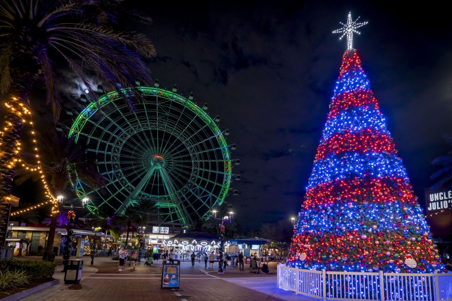 ¡Mientras esté en The Lawn, asegúrese de tomarse una foto con el hermoso árbol navideño de 50 pies del Distrito I-Drive!