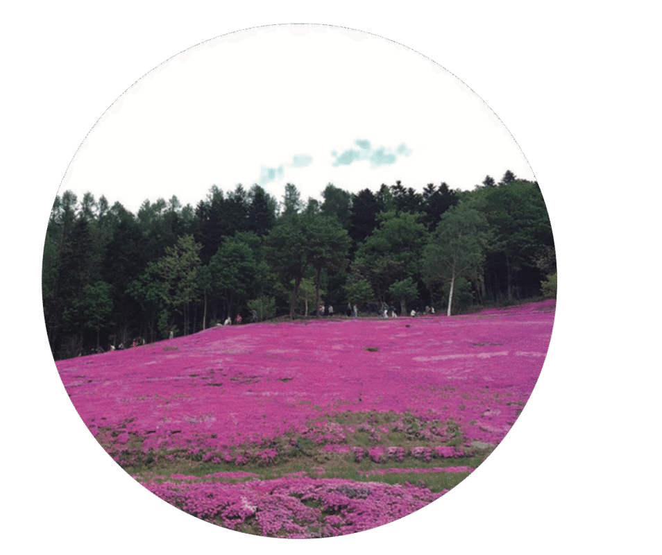 Es como una alfombra rosa, cubierta por millones de flores de shibazakura, en vibrantes tonos rosa, magenta, morado y blanco. Creada en 1956 con solo una caja de semillas, cada año se utilizaron más semillas para cubrir toda la ladera.